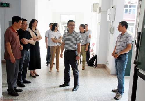 学院领导认真查看各单位迎新准备工作