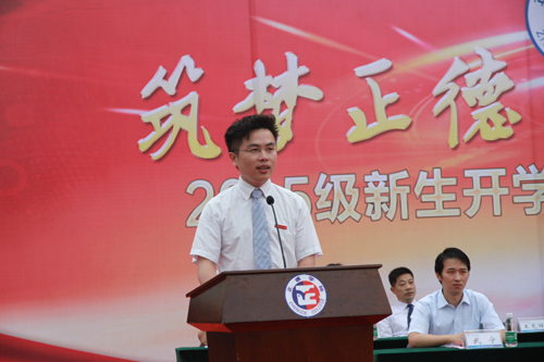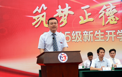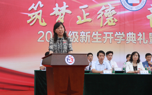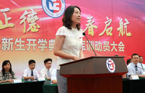 9月15日上午,春满四合院 隆重举行“筑梦正德 青春启航”2015级新生开学典礼,院长庄群华在讲话中勉励全体新生在未来三年的大学学习生活中学会做人、学会学习、学会生活,在正德学院这片沃土上放飞自己的青春理想。学院党委书记、副院长左彤云、副院长刘小廷、赵凯雷,院长助理赵湘莲、王健以及各单位主要负责同志出席典礼。左彤云主持了开学典礼。