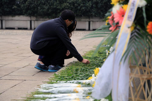 向革命烈士献花