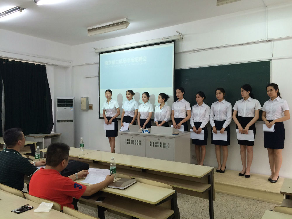 专场招聘会上,禄口机场招聘团队向前来参加面试的2014级空中乘务专业的30名同学进行了实习工作岗位的宣讲,主要介绍了禄口国际机场的概况与地面服务人员的工作要求与性质。随后,4名面试官对参加面试的同学进行了3轮面试,学生们良好的外在形象及全面的职业素养赢得了面试官们的一致好评,共有10名学生获得拟录用资格并将于近期进行岗前实习。据悉,这些实习生中的优秀者将有机会进入南京禄口国际机场工作。