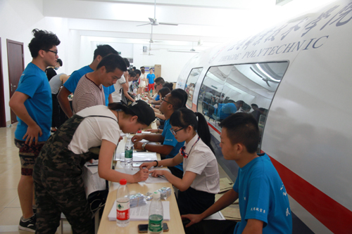 春满四合院 各系为了向新生及新生家长充分展示各系专业办学特色,动足了脑筋。电子与信息技术系“无人机应用技术”专业今年刚刚创办,但是已经受到许多新生的追捧,该专业教师专门在创新楼广场展示和现场操控各种型号的无人机,吸引了许多新生和新生家长的注意力。艺术设计与建筑工程系将该系骨干教师的情况,用展板图文并茂向新生介绍,很多新生看了师资介绍后,对自己的专业学习更有信心。民用航空系直接把新生报到地点设在该系建成不久的航空模拟舱实训室里,该系参与报到工作的学生,身着职业制服为新生办理各种手续,报到现场航空特色极为明显。经济与管理系新生报到服务贴心,该系身穿志愿者服装的学生手拿导向牌为该系新生入住宿舍导向。机电工程系结合专业特点设计了立意新颖的迎新幕布和横幅标语。从辅导员信息微信扫码,到与机电卡通人物合影,众多迎新准备吸引了很多新生和家长们的目光。艺术设计与建筑工程系制作的该系历届优秀毕业生风采墙让众多前来报到的新生们眼前一亮,纷纷驻足观看。