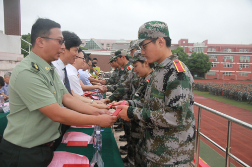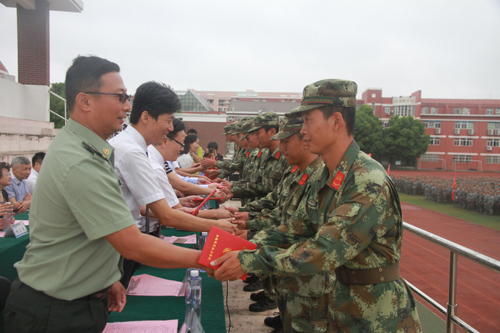军训汇报表演后,赵凯雷副院长宣读了《关于表彰2016级新生军训标兵、优秀学员的决定》,主席台上的领导分别为军训优秀学员代表、军训标兵代表以及军训优秀教官颁发荣誉证书。