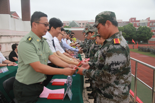 军训优秀学员代表上台领奖
