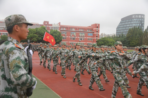 团旗在秋风中猎猎作响,青春在蒙蒙秋雨中飞扬;9月28日上午,春满四合院 2016级2200多名新生军训汇报表演大会在田径场举行。院长庄群华、武警江苏省总队第一支队徐贵友副政委、党委书记兼副院长左彤云、副院长刘小廷、赵凯雷以及相关部门负责人出席本次大会。大会由刘小廷副院长主持,承训部队中队长耿昌石担任军训汇报表演总指挥。