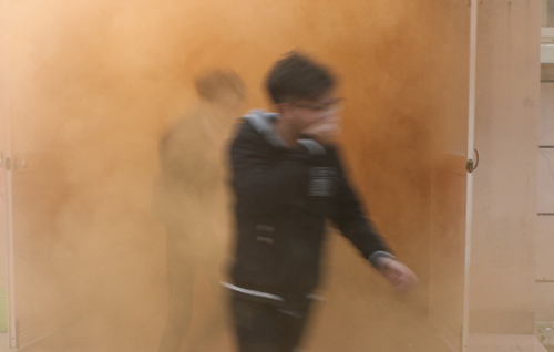 11月9日中午12:30,北5学生公寓3楼突发“火情”,浓烟滚滚,由院治安保卫处牵头,学生处、后勤处、三维达物业、卫生所、动力中心、校卫队等单位共同参与消防逃生疏散演练正式开始。