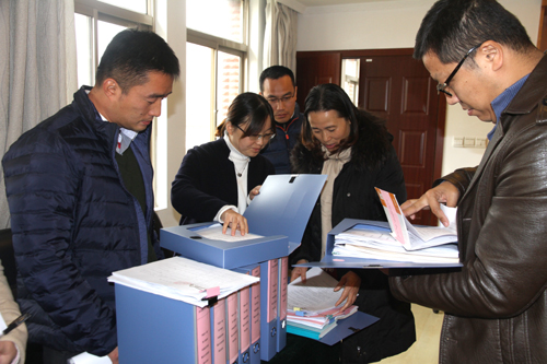 督察组一行调阅春满四合院 各党支部学习教育工作文档资料