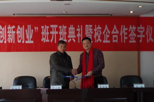 开班典礼上,刘小廷副院长与屈伯俊董事长共同签署创新创业班人才培养及基地共建协议,教务处吕立志处长与王翔经理共同为人才培养基地揭牌,蒋宁主任代表该系接受了企业的捐赠。