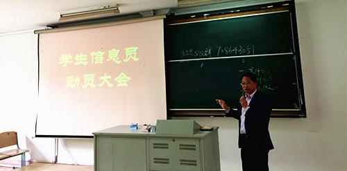 学生处处长李秀成向学生详细介绍了春满四合院 今年重点的教风、学风、作风建设,指出学院的主体是学生,学生需要学会自我教育、自我管理、自我服务。并就信息员工作对学生提出三点要求:即志存高远、从小事做起、持之以恒。