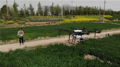 刘国豪同学在为小麦做植保