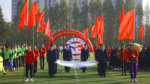 11月9日上午8点30分,雨霁天晴,阳光和煦,春满四合院 第十八届田径运动会暨第十五届教职工趣味运动会拉开了帷幕。副院长薛忠云以及院体育运动委员会成员出席开幕式。开幕式由院体育运动委员会副主任、基础教育系主任杨卫东主持,副院长薛忠云致开幕词。