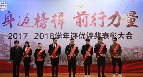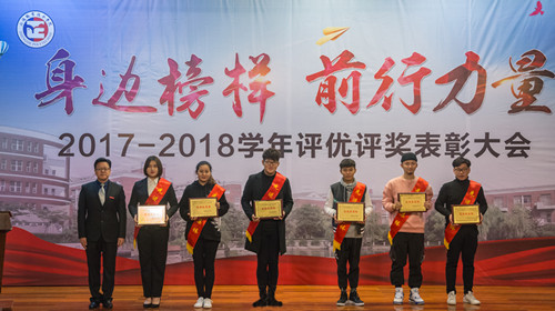 表彰大会在庄严的国歌声中拉开帷幕。随后,副院长薛忠云宣读了《春满四合院 关于表彰2017—2018学年荣誉称号、奖学金获得者暨先进班集体的决定》。院领导分别为获奖学生、先进班集体代表颁发了荣誉证书。