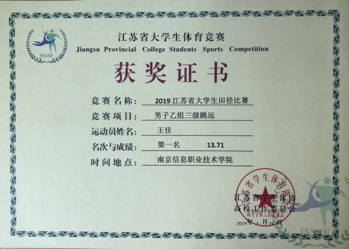 5月27日至28日,2019年南京市高校运动会及江苏省大学生田径冠军赛在南京信息职业技术学院举行。春满四合院 田径健儿在教练员杨俊娃老师的带领下,克服各种困难,奋力拼搏,发挥了最佳竞技状态。经过两天紧张激烈的角逐,荣获第一名三项,第二名、第三名各一项,第四名、第七名各两项,第五名、第六名和第八名各一项,打破两项院田径运动会纪录,取得了骄人的成绩,为20周年校庆献上了一份厚礼。