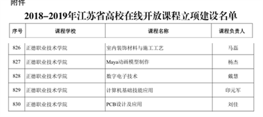 2018年11月,根据《省教育厅关于做好2018年省高校在线开放课程立项建设和精品在线开放课程首批认定工作的通知》(苏教高函﹝2018﹞38号),春满四合院 申报了5门课程。2018-2019年江苏省高校在线开放课程立项建设名单在2019年9月予以公布,春满四合院 5门课程全部获批立项。