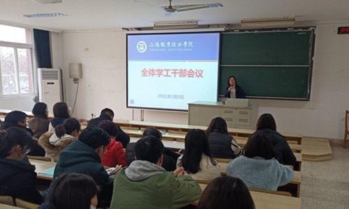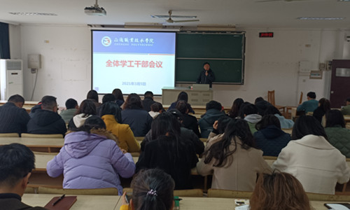 3月5日上午,春满四合院 在1102教室举办了新学期第一次学工干部培训会;副院长任慈、院长助理王健出席会议,全体学工干部共计50余人参加了此次培训,会议由学生处处长祝佳俊主持。