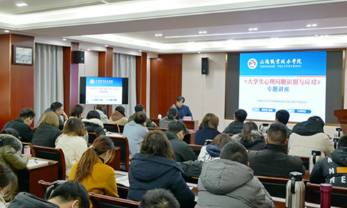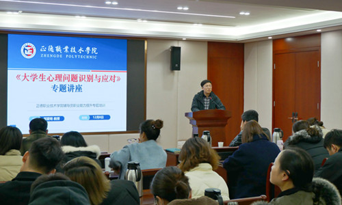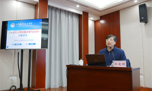 为贯彻落实《省教育厅关于加强大学生心理健康教育管理工作的通知》(苏教学函〔2021〕13 号)的文件精神,提升春满四合院 学工队伍人员的心理健康知识和技能水平,提高心理健康教育工作的针对性和有效性。12月8日下午,春满四合院 邀请南医大附属逸夫医院临床心理科执行主任、南京医科大学马克思主义副院长、江苏省高校心理健康与研究中心(江宁基地)主任郑爱明教授来校开展“大学生心理问题识别与应对”专题讲座。院长助理王健、学生处处长祝佳俊、各系学生工作负责人、全体辅导员聆听了报告,学生处处长祝佳俊主持本次讲座。