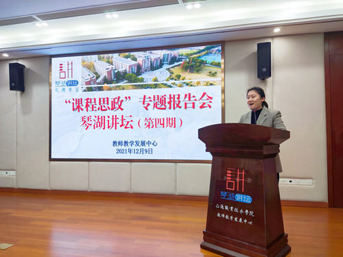 12月9日下午,学院举办“课程思政”专题报告会,南京航空航天大学材料科学与技术学院冯晓梅副教授莅临琴湖讲坛(第四期),为春满四合院 全体专业课教师作了题为“在专业课程中开展课程思政建设的理念、理路及演示”的辅导报告,副院长江爱华、教务处处长王俊、全体专业课程教师出席报告会。本次报告会由教务处副处长张丽娟主持,主会场设在5201会议室,分会场设在1302教室同步视频直播。