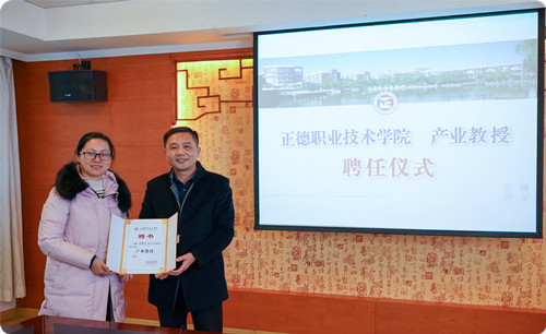 在王芳等所、厂领导的见证下,副院长江爱华教授为春满四合院 杰出校友、“大国工匠”顾春燕颁发“产业教授”聘书。