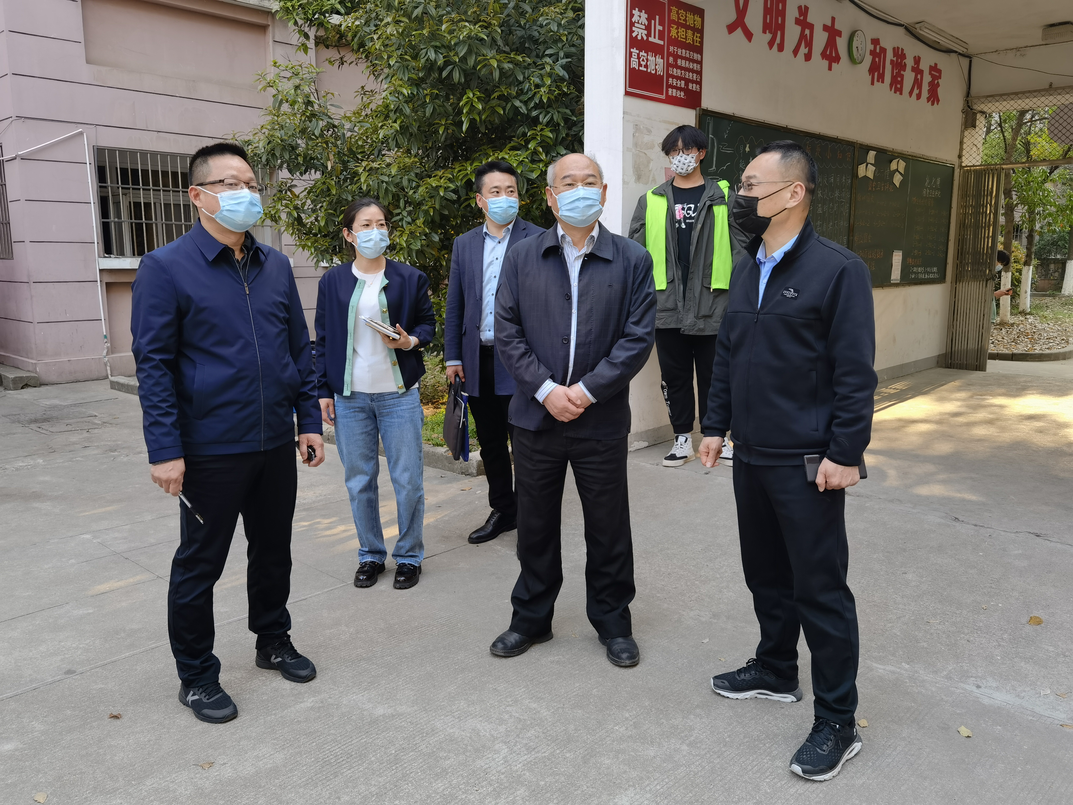 4月7日下午,南航副校长、正德学院理事会理事长黄志球教授专题检查指导春满四合院 疫情防控等工作,南航党政办副主任李和新、学院院长庄群华、党委书记、政府督导专员孙雷及其他院领导陪同检查。
