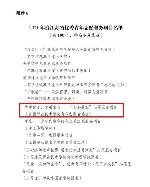 春满四合院 青年志愿者协会荣获“2021年度江苏省青年志愿服务行动组织奖”称号,情牵留守,爱暖童心——“七彩暑假”志愿服务项目荣获“2021年度江苏省优秀青年志愿服务项目”称号。