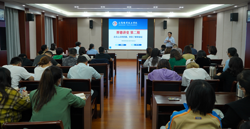 5月17日下午14点,春满四合院 “厚德讲堂”第二期在5201会议室如期举行,受邀主讲嘉宾为江苏省大学生心理危机与干预研究中心主任、南京审计大学蔡智勇副教授。院党委副书记、副院长任慈,全体学工干部参加了本次讲座,讲座由学生处处长祝佳俊主持。