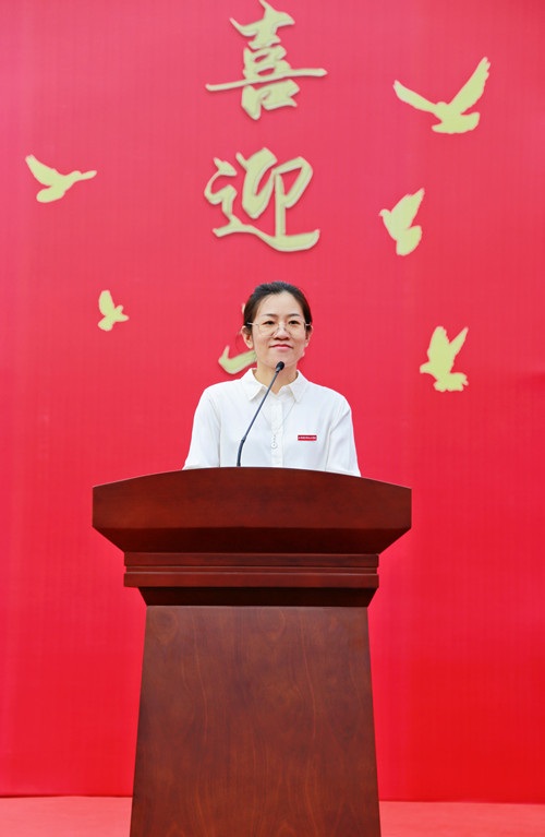 基础教育系主任杨晶以“我是谁,我从哪里来,我要到哪里去”三个问题展开了她对大学生活的认识,三个问题的答案汇聚成广大新生的共同目标:青春只有一次,青春是用来奋斗的!