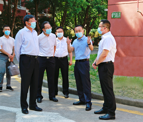 马欣一行检查了校园门岗、核酸检测点、一站式学生社区、食堂等重点场所,详细了解了校园管理、核酸检测、校门出入及国庆假期的生活保障、活动安排等情况。