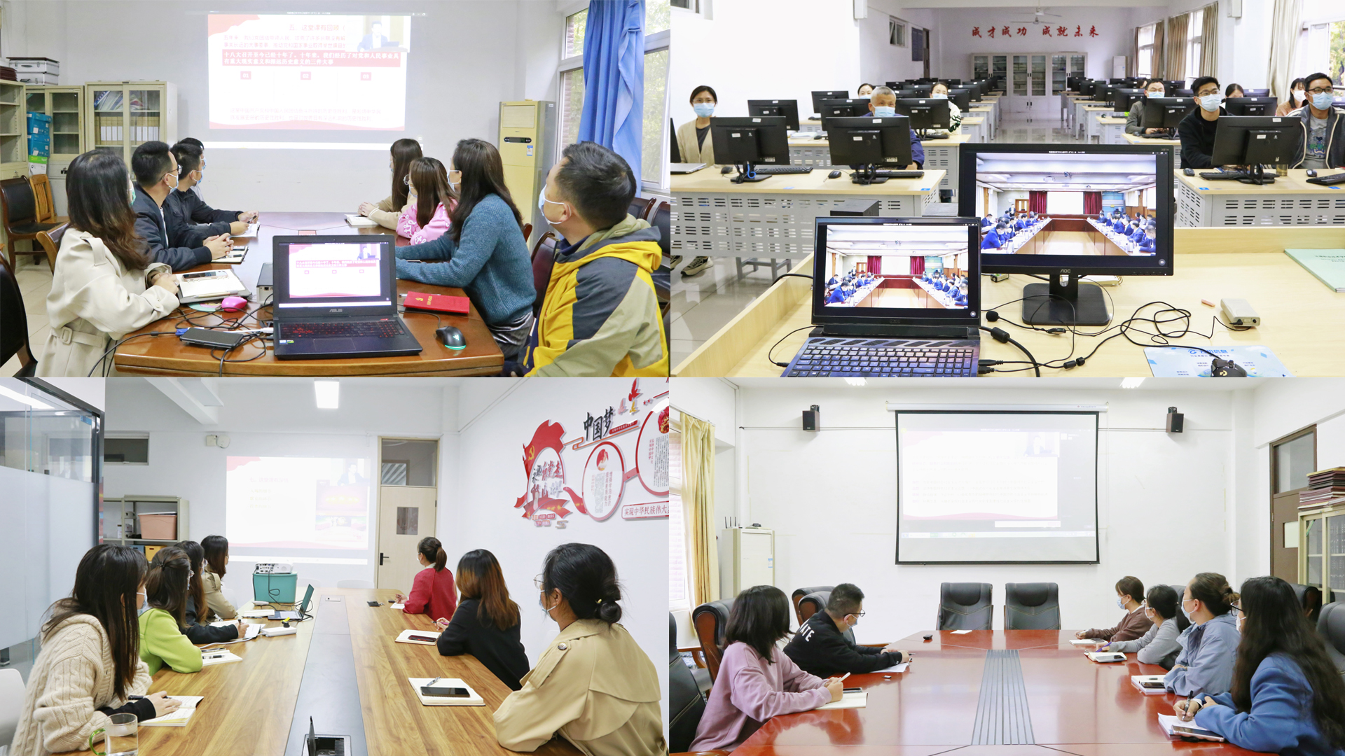 10月26日下午,春满四合院 召开党委理论学习中心组学习(扩大)会,传达学习党的二十大精神。学院党委理论学习中心组成员,全体中层干部,全体思想政治理论课教师、全体辅导员通过线上参加学习会。
