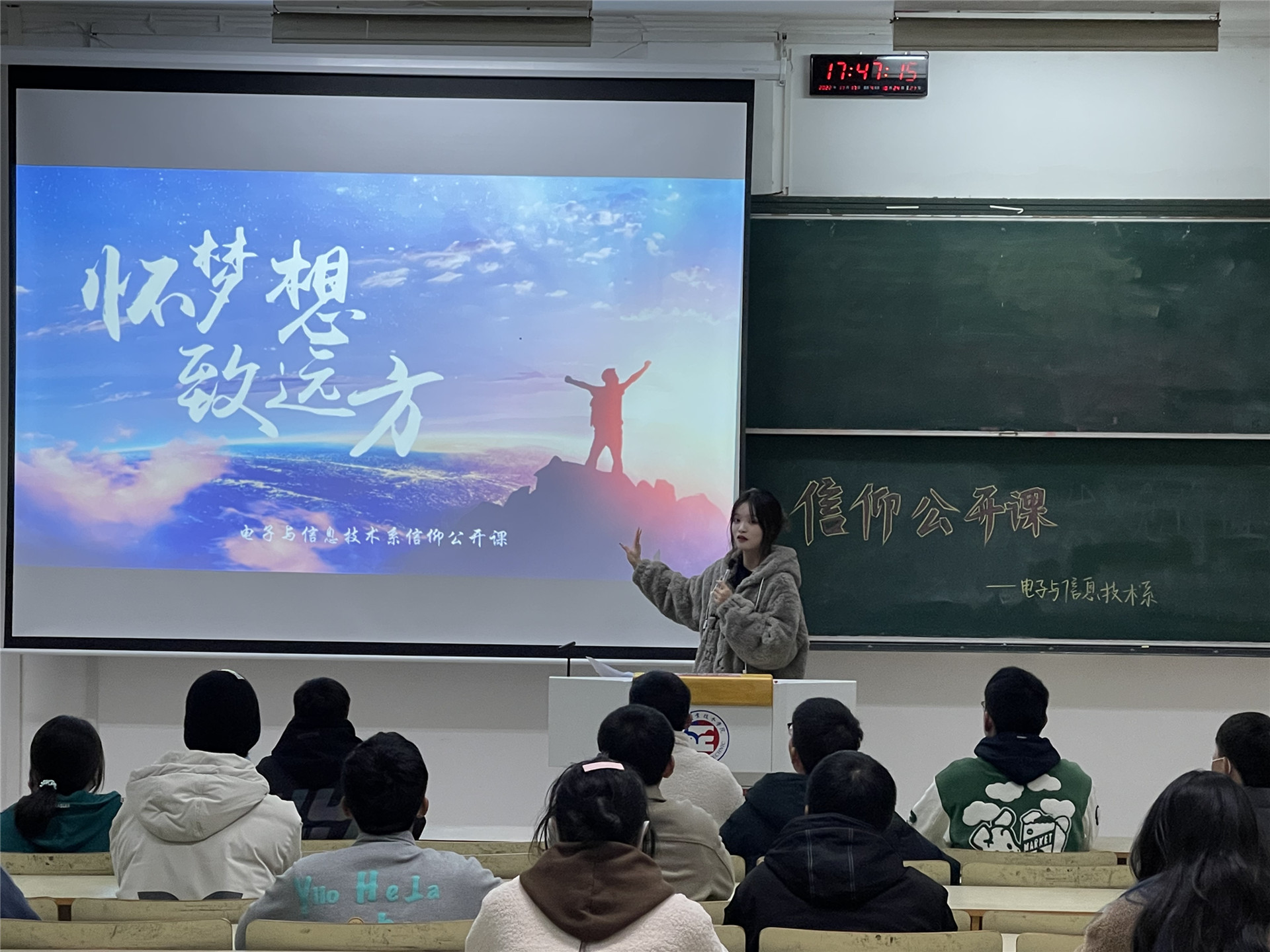 为了弘扬梦想精神,明确同学们对自己未来的发展规划,鼓励同学充实锻炼自身能力,电子与信息技术系于11月7日至20日开展主题为“怀梦想,致远方”信仰公开课活动。