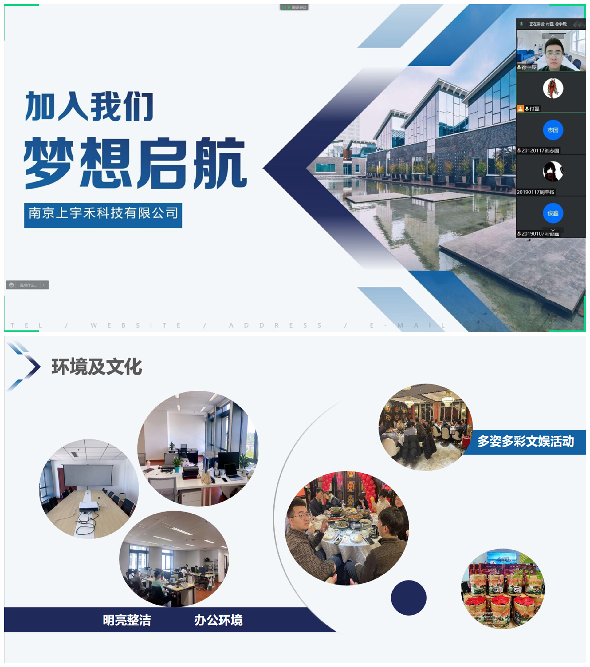 讲座结束后,徐宇辰通过ppt宣讲的形式向与会同学展示了自己所在公司南京上宇禾科技的企业文化、岗位需求、发展前景、薪资待遇等信息。同学们针对自己感兴趣的问题与徐宇辰进行线上交流沟通,主动了解用人单位的基本情况并表达自己的求职意向,徐宇辰对毕业生的就业疑惑进行了详细的解答,有求职意向的同学在线上进行了简历投递。