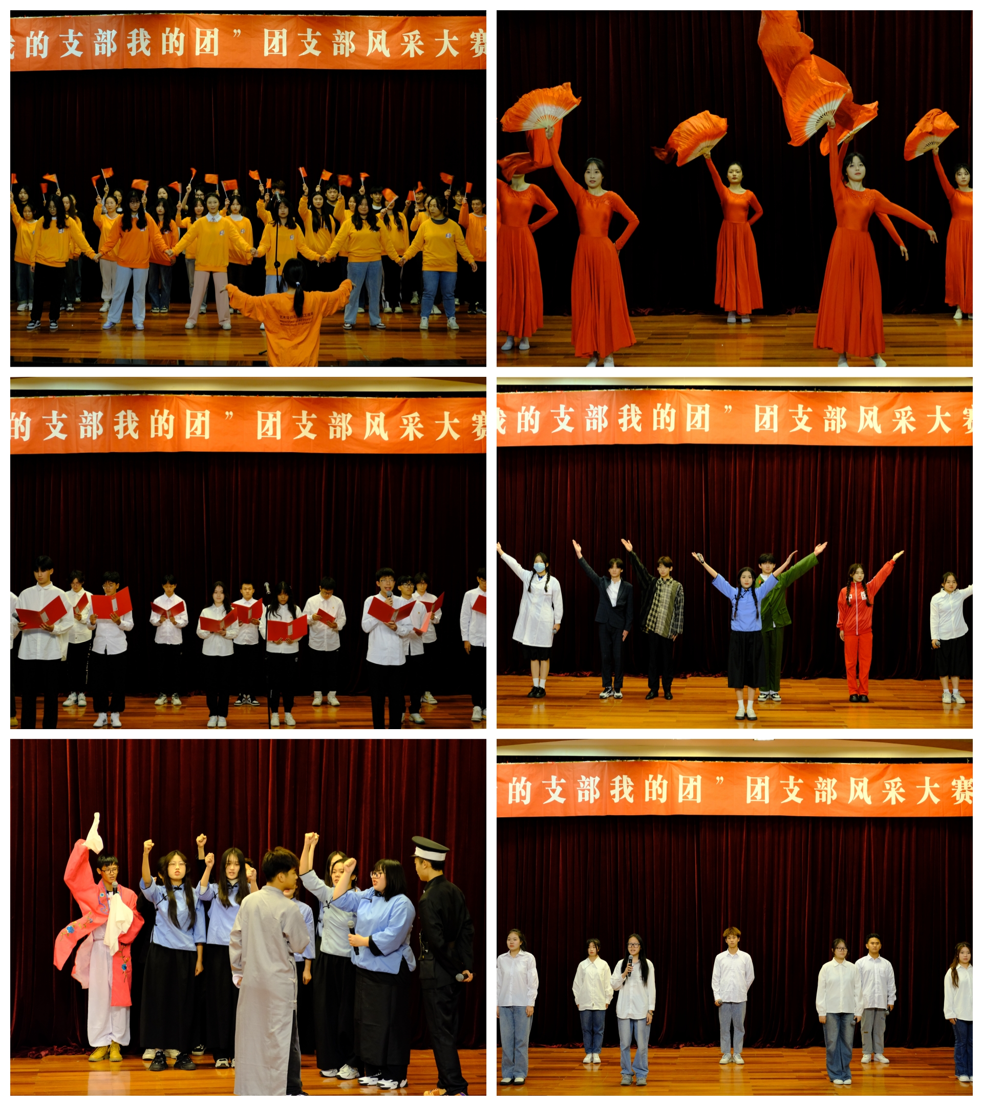 各系参赛团支部以合唱、诗歌朗诵、情景剧演示、舞蹈等多种艺术形式展示,充分表现各团支部青春的活力与风采。红色诵读凝聚着惊涛骇浪的豪情,饱含着对祖国的满满热忱;合唱引人入胜,时而慷慨激昂、时而婉转悠扬,流露出青年学生的蓬勃朝气;情景剧拉近历史的距离,带人重温党带领人民群众走过的百年奋斗历程的艰辛探索。各团支部的表演表达展示了团支部积极向上、奋勇进取的精神面貌,展现出热爱生活、团结进步的团支部氛围。