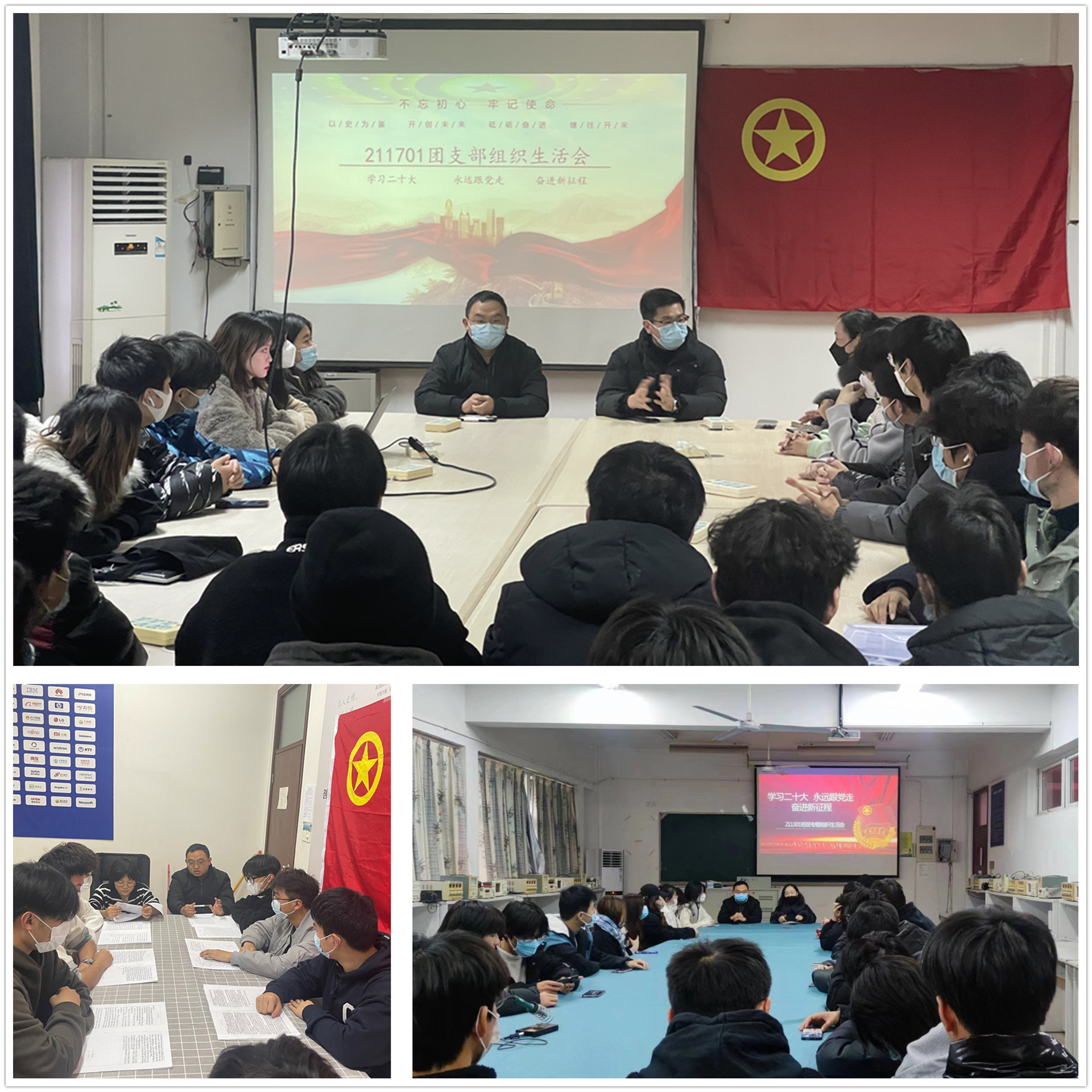 为深入学习宣传贯彻党的二十大精神,引导广大青年学生切实把思想和行动统一到党的二十大精神和党的重大决策部署上来,以实际行动把学习贯彻党的二十大精神落到实处。12月5-8日电信系2021级、2022级各团支部分别在教室、会议室、党团活动室开展共青团“学习二十大、永远跟党走、奋进新征程”专题组织生活会,电信系党支部书记赵欣、团总支书记何华智和各年级辅导员受邀参加会议,并对团员评述做点评指导。