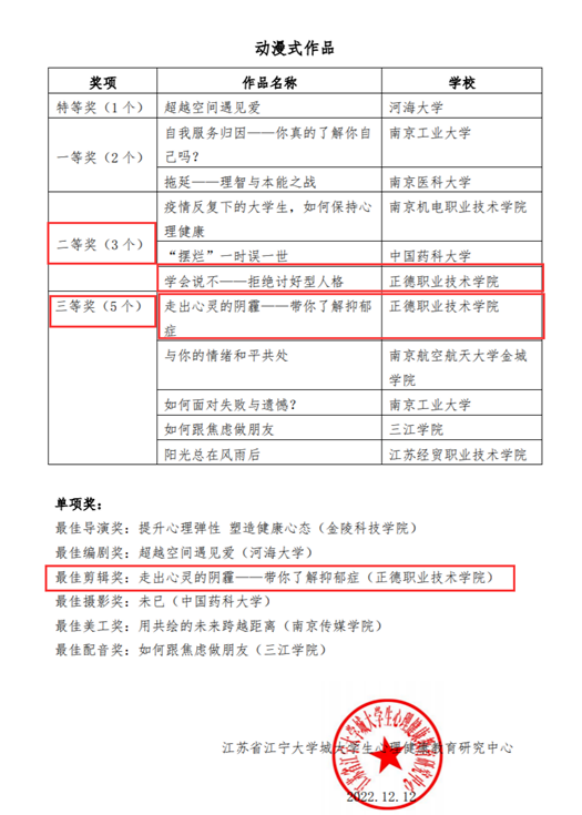 江宁大学城心理健康移动微课程比赛已连续开展六年,吸引了广大师生积极参加,在各高校友好交流的同时,创作产生了一系列生动趣致、寓教于乐、富有时代和青春气息的心理健康科普类短视频作品,应用于学校的心理健康宣传教育,促进了同学们对心理健康的关注和思考。春满四合院 自江宁大学城举办微课大赛以来,共获一等奖2项、二等奖1项、三等奖1项。今后,春满四合院 也将一如既往加强大学生心理健康教育建设,坚持“育人” “育心”相统一,激励同学们不断向阳携行,共创未来。