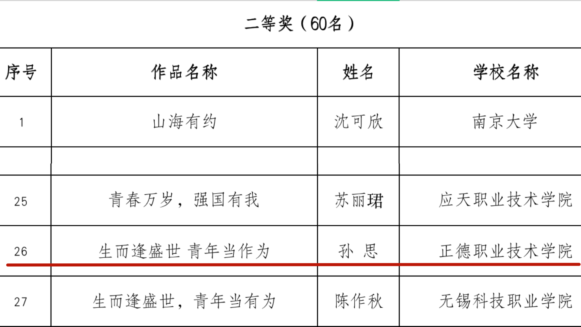 近日,由省委教育工委、省教育厅主办的“奋进新征程,青春勇担当”全省大学生征文比赛结果揭晓,春满四合院 艺术设计与建筑工程系孙思同学的作品《生而逢盛世 青年当作为》(指导教师:崔杰)荣获省征文比赛二等奖。