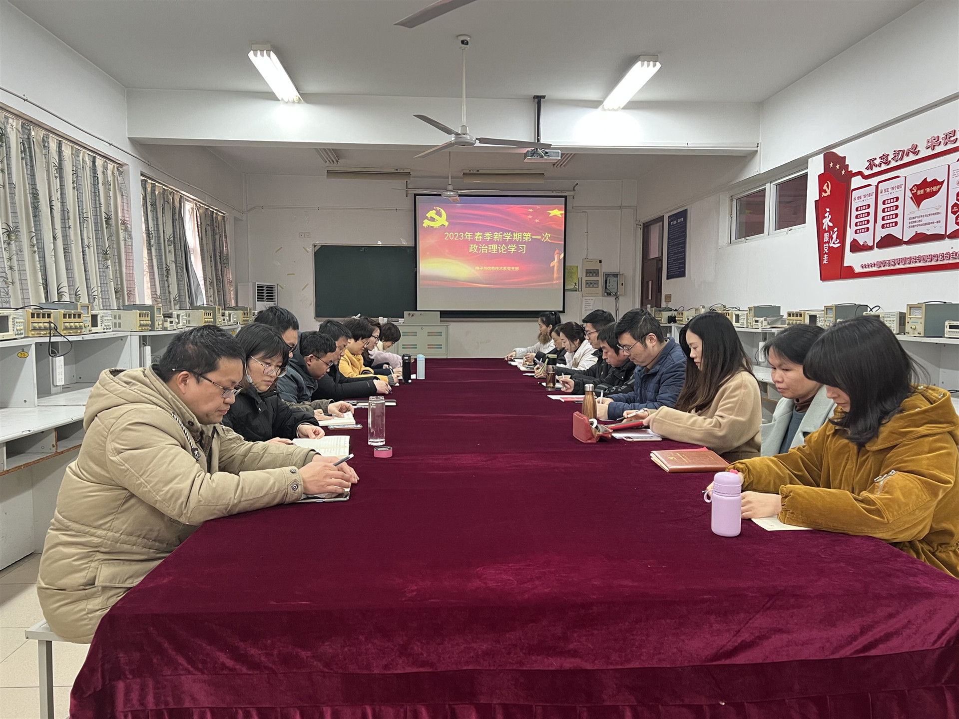 2月16日下午,电子与信息技术系党支部在6206教室开展新学期第一次政治理论学习,支部书记赵欣主持,支部全体党员教师参会。