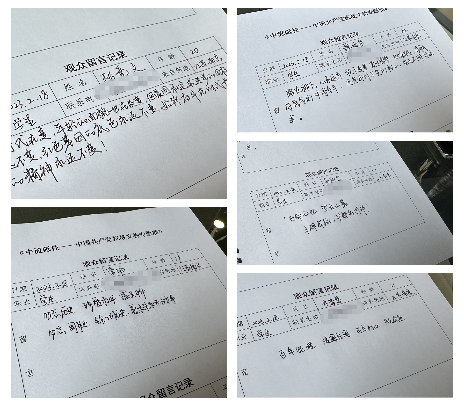 在展馆内,航空英雄陈怀民的一副航空手套和银饰引起了同学们的注意,陈怀民是我国航空英雄中最为著名的烈士,时任第4航空大队第21中队飞行员,1938年武汉“4·29空战”中,他在击落一架敌机后受到5架敌机围攻,飞机油箱着火。本可跳伞求生的陈怀民毅然驾机撞向敌机,与敌同归于尽。这副航空手套,是陈怀民在升空决战的前夜留给妹妹陈难的。陈怀民牺牲后,妹妹一直把这副手套珍藏在身边。同学们在这副手套面前伫立许久。同学们纷纷写下了观众留言。