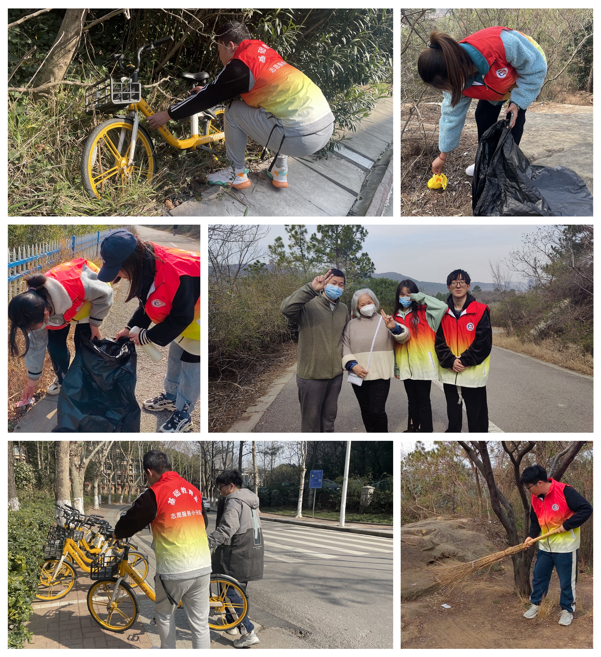 南京的三月,带着些许早春的温暖,也残留着寒冬的料峭。同学们手拎垃圾袋来到翠屏山,一路捡起路边的垃圾;看到草丛旁随意倒放的共享单车,扶起并摆放到路边指定位置,共同维护翠屏山的文明环境。