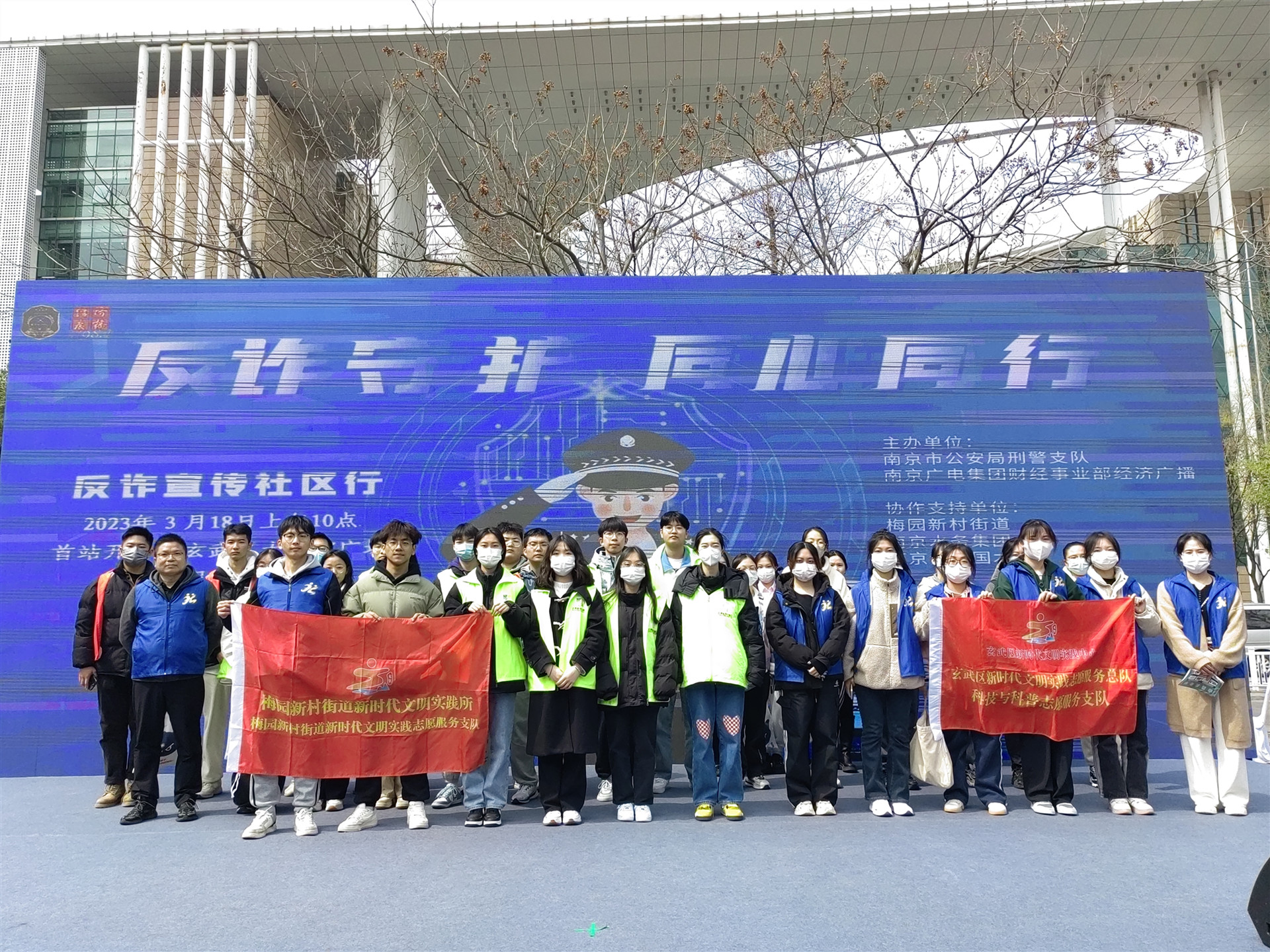 3月18日上午,南京市公安局刑警支队、南京广电集团共同举办“反诈·守护 同心·同行”反诈骗宣传活动,向电信网络诈骗宣战。活动旨在通过文艺汇演的形式展现反诈故事、宣传反诈知识,让人感受到警民同心反诈的决心和信心,从而让身边的每一位成员主动承担起反诈宣传的责任。电子与信息技术系志愿者全程参与了本次活动的志愿服务工作。