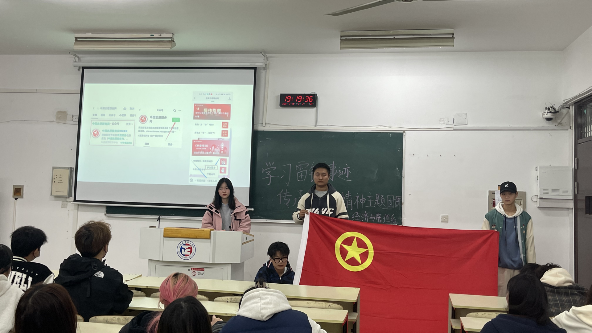 团课结束后,同学们积极响应要加入志愿者的大家庭,努力成为新时代雷锋精神的传播者与弘扬者,用实际行动践行“雷锋精神”,做到心中有祖国,有人民。雷锋精神凝聚着时代精华,是激励同学们前进的宝贵精神财富,将永远照亮同学们的青春岁月。
