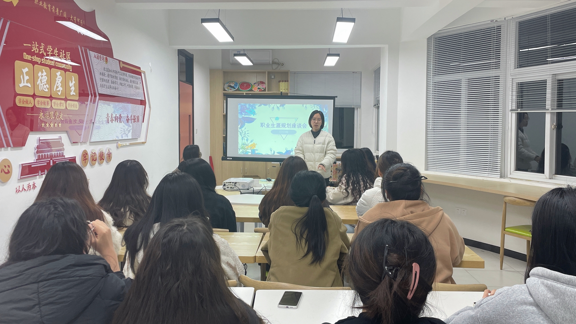 活动最后,辅导员刘老师与同学进行了互动交流,具体了解同学的规划和想法,并给每位同学有针对性的给了建议与指导。刘老师告诉同学们,人对未知的事务往往都会有焦虑、迷茫情绪,因为不了解、不清楚、不知道,所以第一反应会是退缩,这往往是因为我们没有底气,所以我们需要通过对专业技能的不断深入学习、对职业资格证的不断积累获得,对不同职业、岗位的尝试来积累我们的底气,不要做空想者,要做行动派,希望同学们用自己的实际行动去实现自己的梦想。