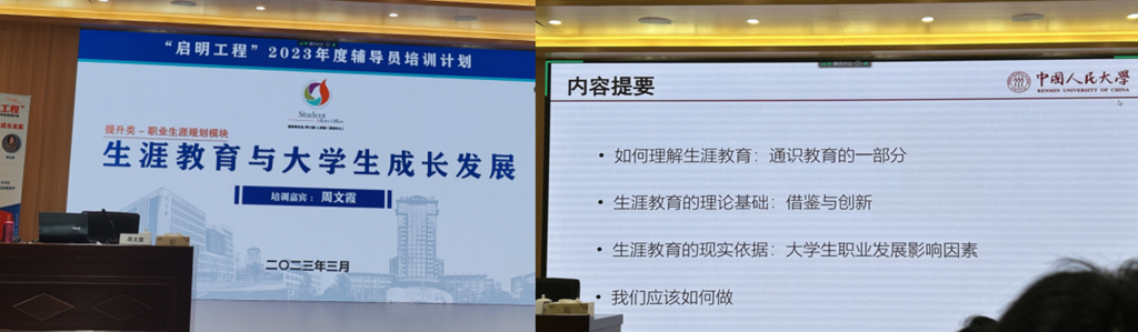 周教授围绕如何理解生涯教育、生涯教育的理论基础与发展、影响大学生生涯发展的现实依据和如何做好大学生的生涯教育工作这四个方面和与会同志进行了深入的交流。通过四个方面的阐述,由浅入深、由理论到实践的层层讲解,最终引导每位学生管理者要从理论精髓出发,方能抵入学生内心,达到对学生生涯教育的启智增慧的作用。