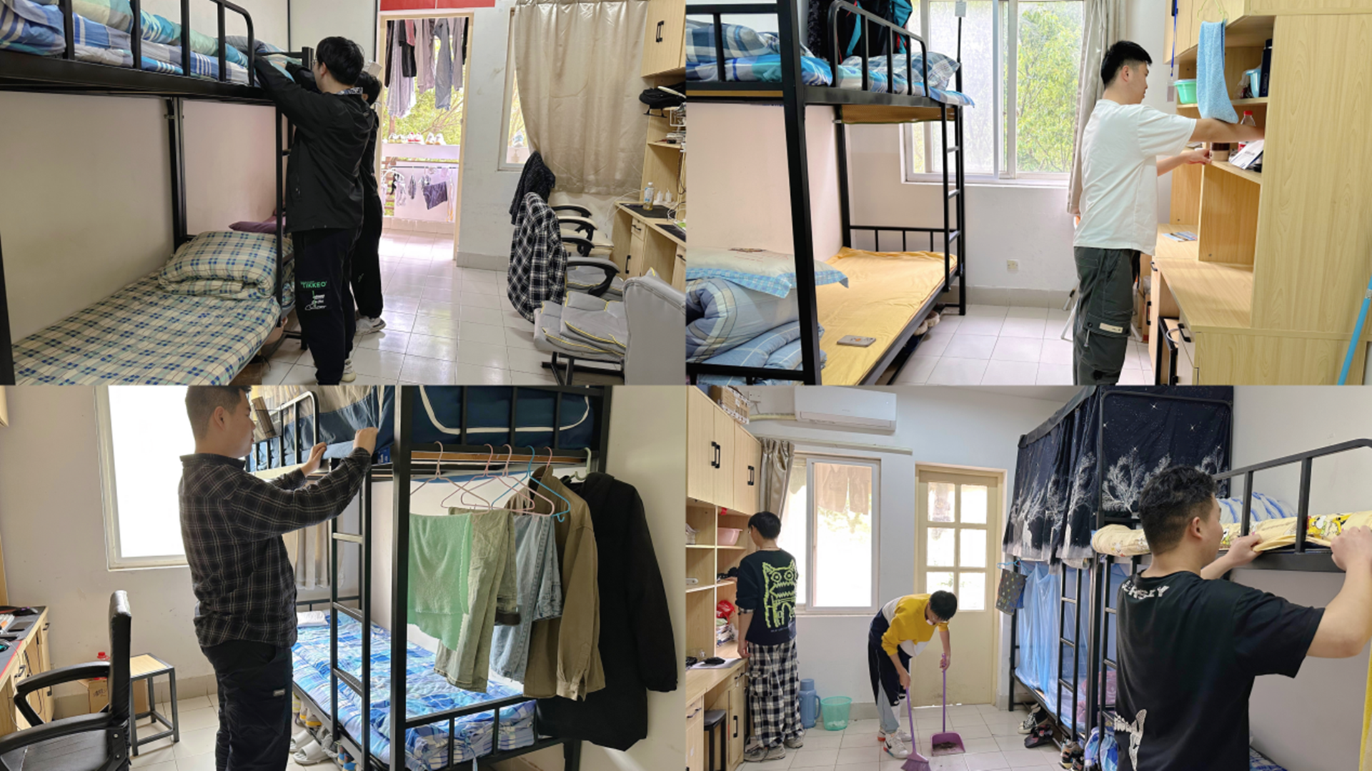 为了加强学生宿舍管理,提高学生环境卫生意识,创建整洁文明的学习和生活环境,充分体现“⾃我管理、自我教育、自我服务”宗旨,民用航空系联合宿管站,自5月8日至5月12日,开展了为期一周的文明宿舍评比活动。