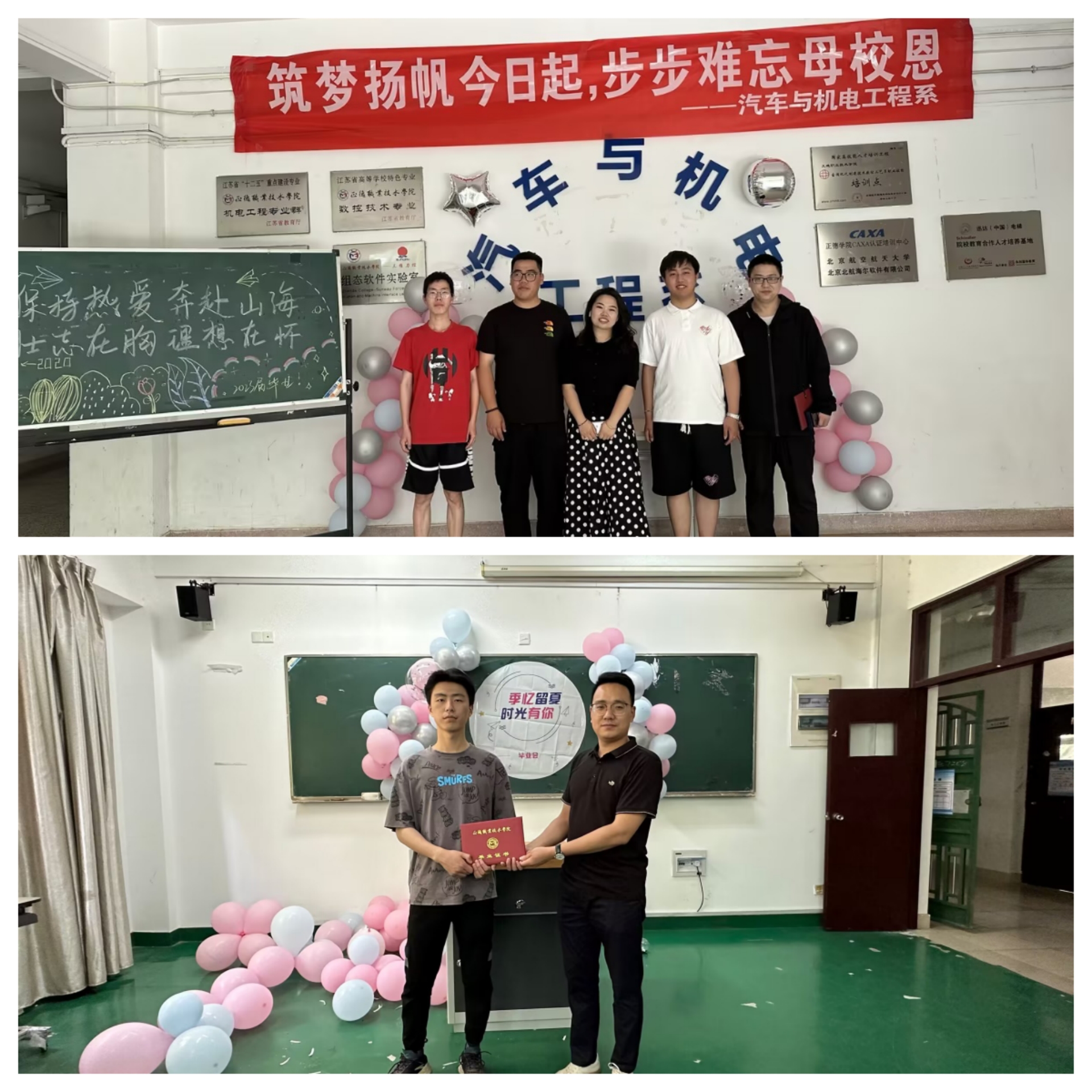 在这个不平凡的六月,又有一批学子将要离开学院。为欢送毕业生,汽车与机电工程系在7105、7106教室开展毕业生欢送会,汽车与机电工程系主任任丽君,党支部书记朱翔参与此次欢送会。