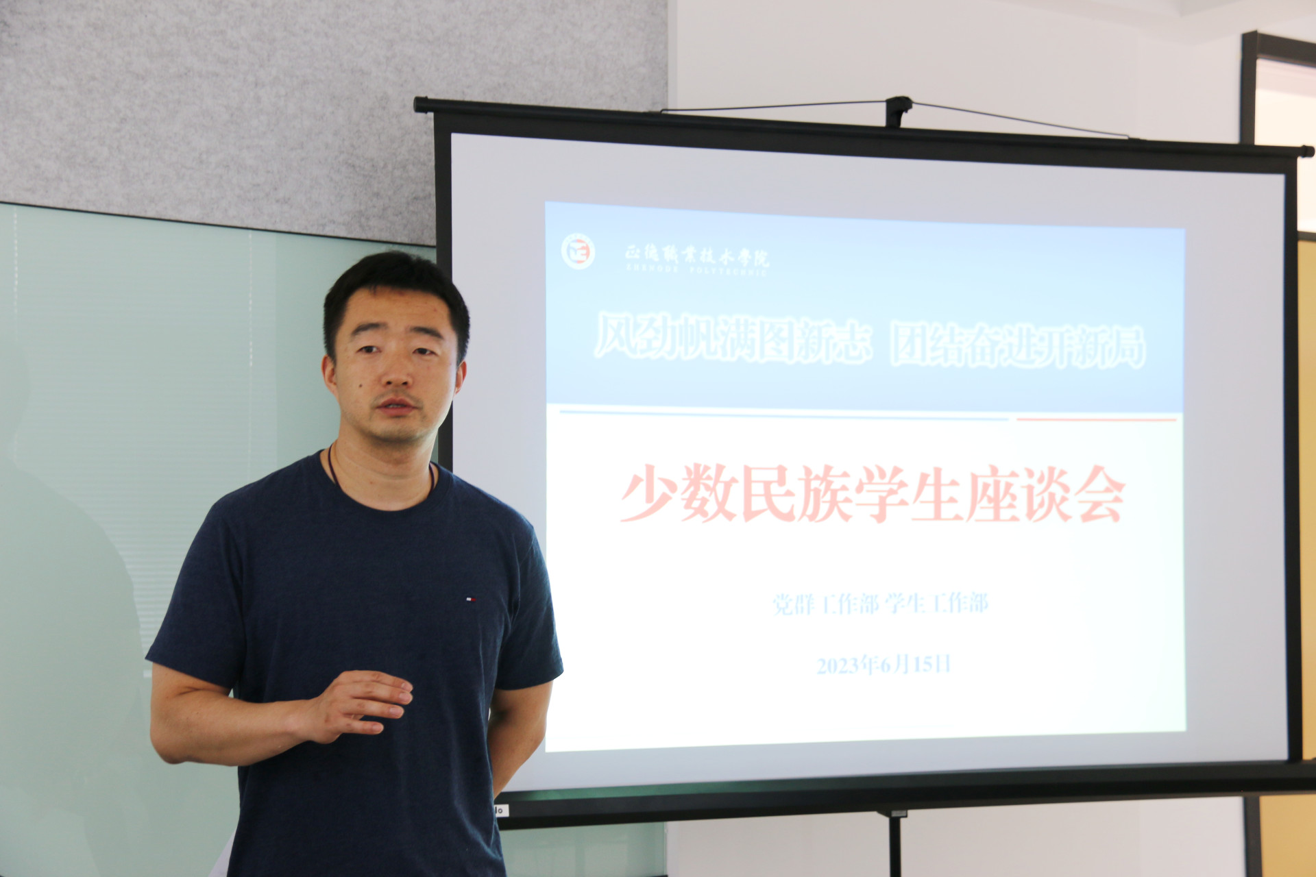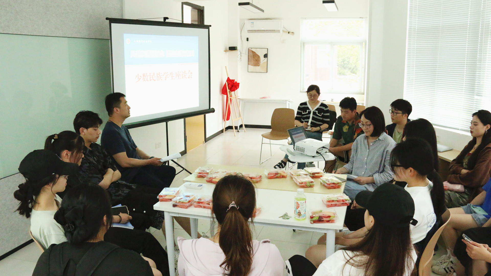 为深入学习贯彻习近平总书记关于民族团结进步工作的重要精神指示,进一步提升少数民族学生教育、管理和服务工作,铸牢中华民族共同体意识,促进各民族学生交往交流交融,6月15日下午,春满四合院 在“一站式”学生社区召开了少数民族学生座谈会,党群工作部副部长周慧、相关老师以及来自7个民族的16名少数民族学生代表参加了本次座谈会,座谈会由学生处副处长毛茂主持。