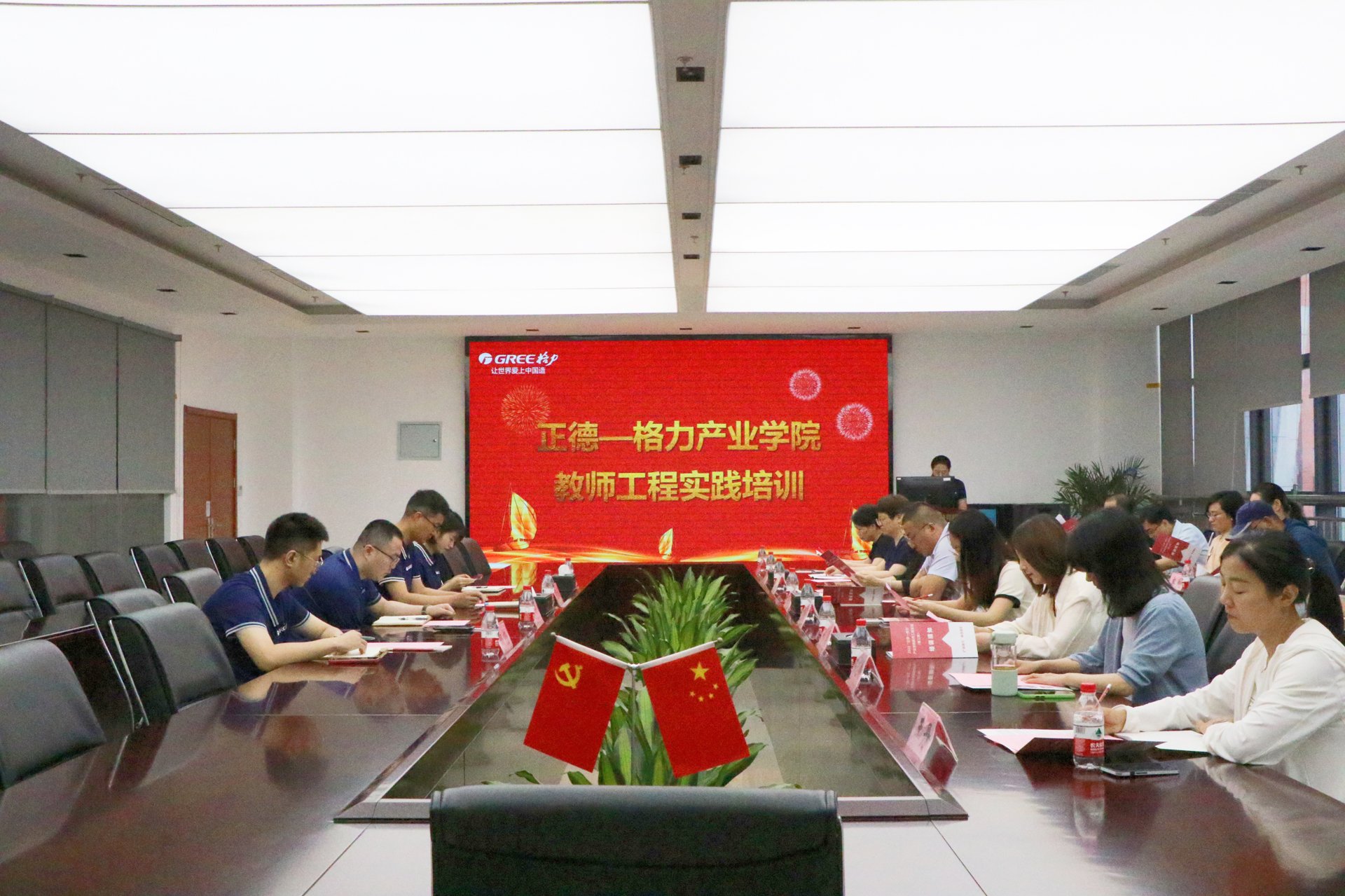6月26日上午,在南京格力行政楼多媒体会议室,举行了隆重的开班仪式,春满四合院 校企合作办主任陆松,南京格力总经办张斌主任、张丽萍主任及部分中干代表出席活动。张斌在致辞中表示,正德学院是南京格力长期的合作伙伴,持续为南京格力提供人才储备与创新动力,希望通过此次工程实践活动,深化双方校企合作。陆松对南京格力提供的实践培训机会和精心组织研讨活动表示感谢,希望本期参与培训的教师珍惜此次宝贵的实践机会,在南京格力进行深层次的交流学习,进一步深化“三教改革”, 全过程、多方位地了解企业生产精神与项目生产过程,设计开发科研项目,提升教学和专业能力。