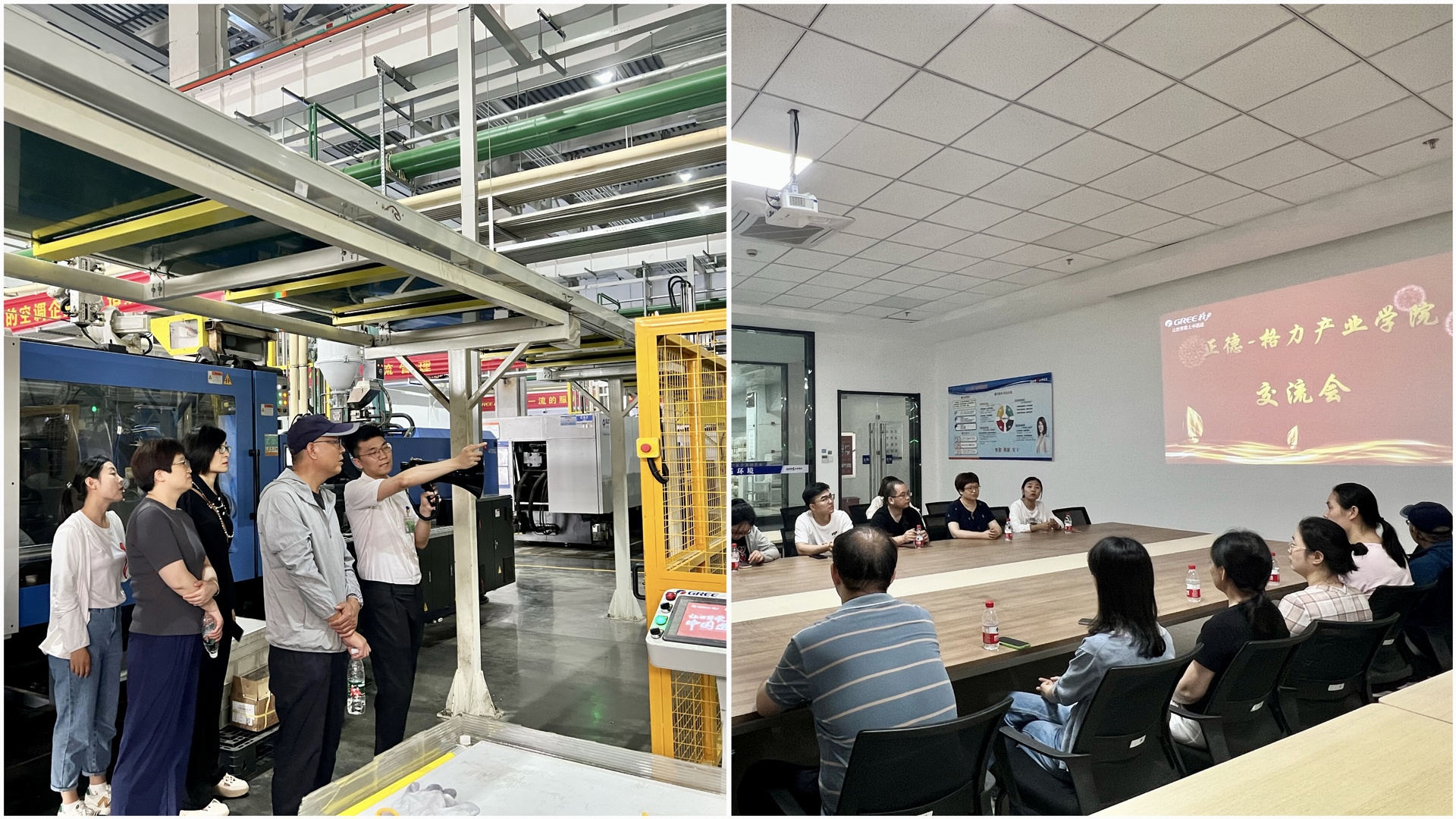 为期两天半的培训学习中,老师们变身学员,通过企业文化宣传、科技展厅讲解、一线车间观摩、工艺知识交流、头脑风暴讨论、课程共建汇报等培训形式,进一步了解格力文化,近距离接触格力产品,全方位深入生产一线,促进课堂教学内容与企业实际需求的对接,为深化产教融合找到了突破口。在科技展厅中,格力总经办介绍企业成长史、奋斗史,讲授格力企业文化与科技产品,结合南京格力基地自身的建设、发展,进一步传递格力“三公三讲”原则,强调“奋斗、创新”对于企业、学校、国家的重要性,引起老师们的广泛共鸣。在总装、控制器、结构分厂,三位厂长带领老师们深入空调一线生产车间,围绕空调生产流程、质量控制、安全管理等知识进行细致讲解。在培训会议室中,工艺设备部肖昌芳部长将老师们在观摩中的所见所闻与空调工艺知识相结合,达成理论与实践的完美融合,帮助老师们充分了解基本的空调结构、工作原理等知识。