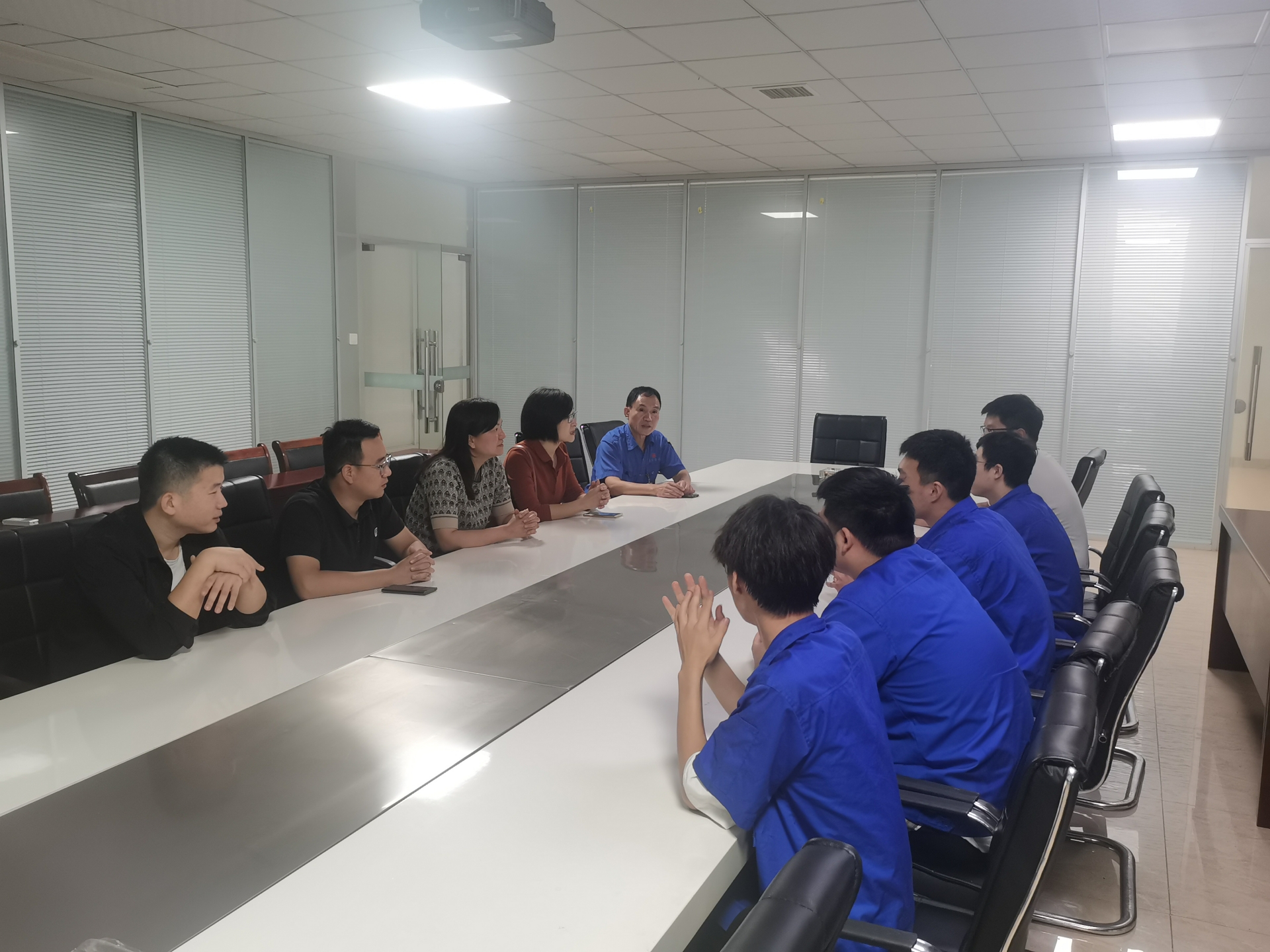 南京赛达机械制造有限公司高度重视此次活动,刘董事长和人事处王经理亲自接待,并带领参观车间,讲解公司各种产品,机器设备及功能。随后,双方就校企合作融合的角度展开了深入的交流,围绕人才培养、协同育人、学生岗位实习等方面进行了探讨,最后,一起看望了在企业岗位实习的学生,了解他们的需求,并对他们的状态给予了肯定,鼓励他们珍惜机会、虚心求教。