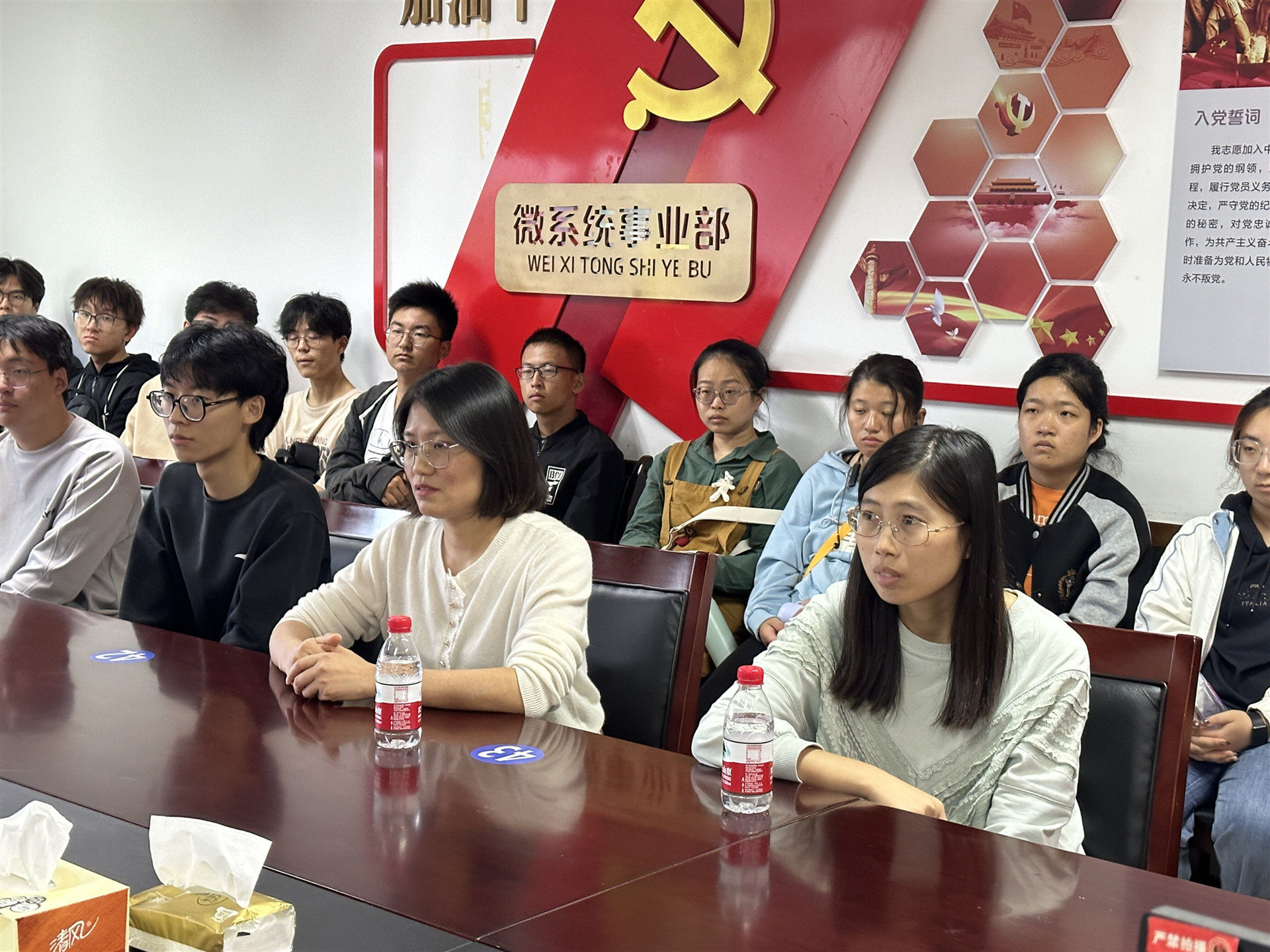最后,双方开展交流座谈。微系统事业部二室党支部书记孙海林热烈欢迎春满四合院 师生的到来,并对近两年双方的“访企拓岗”合作成果给予肯定。春满四合院 杰出校友大国工匠顾春燕、陈浩然和程文峰给学弟学妹介绍了自己多年的工作感悟,鼓励他们努力学习专业技能,为将来的工作打好基础。