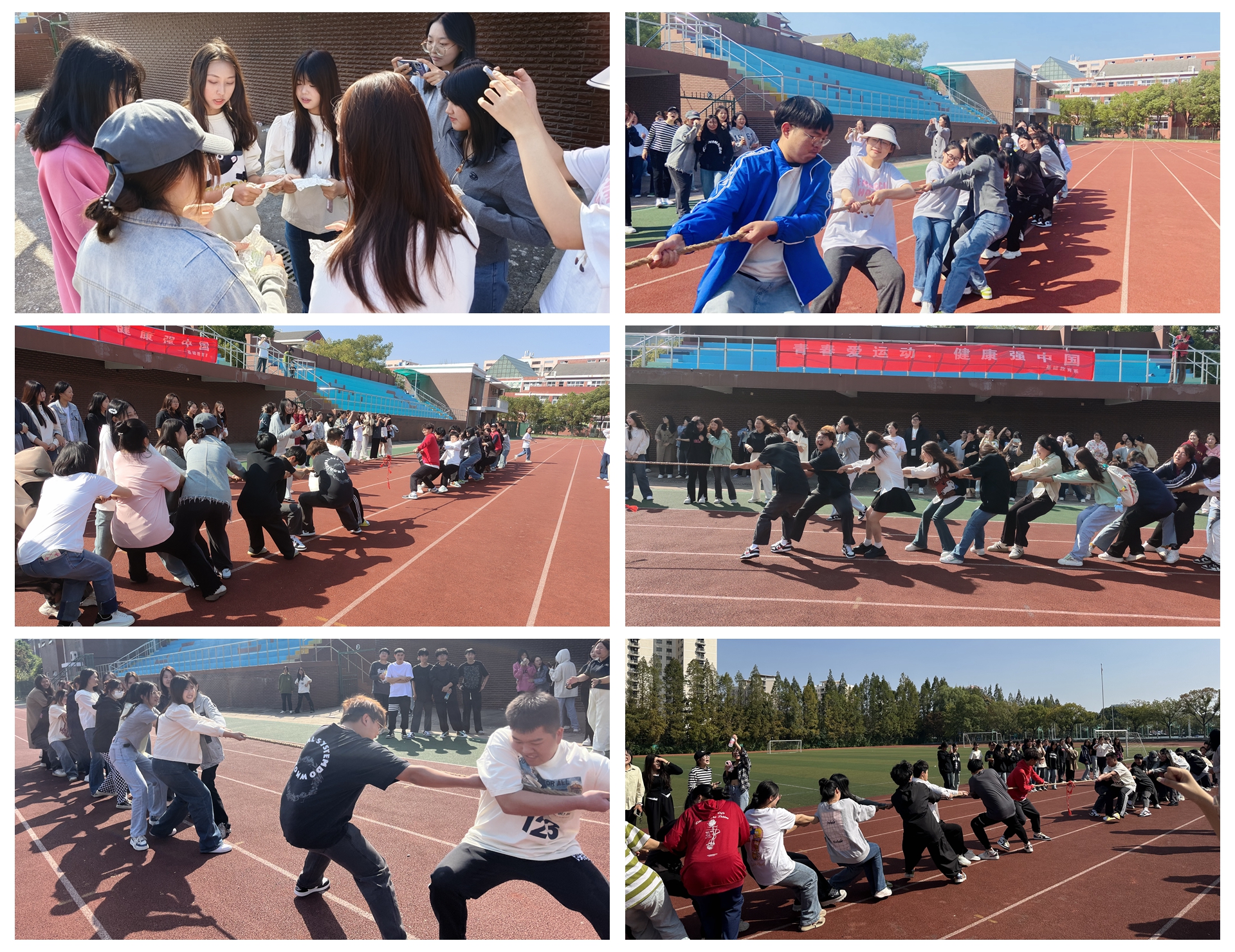 为加快推进体育强国建设,建设健康高雅校园文化环境,培养学生团结协作和坚韧不拔的精神,增强2023级新生凝聚力和对母校的认同感和归属感,基础教育系于10月17日在运动场举办“青春爱运动,健康强中国”拔河比赛。