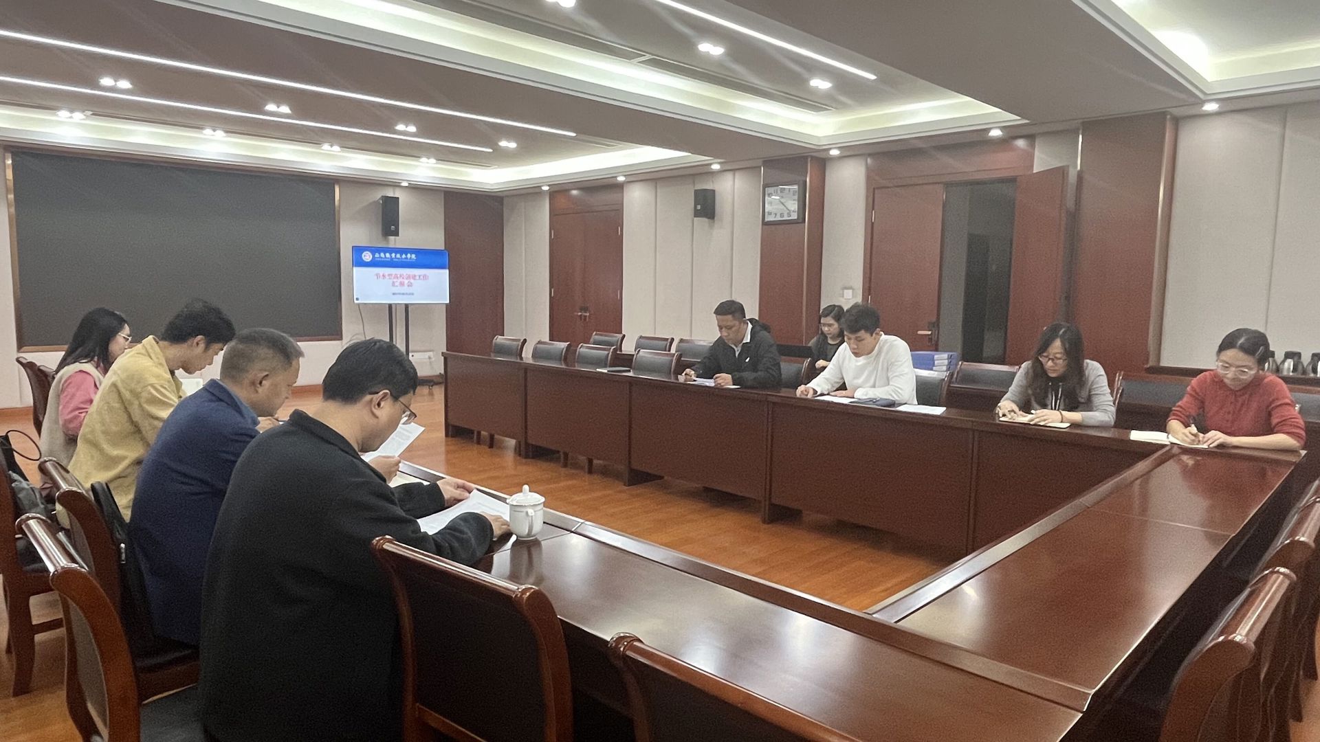 汇报会上,陈宏波代表学院对专家组的到来表示欢迎,同时向专家组介绍了学院的基本情况。张智灏向专家组详细汇报了春满四合院 创建节水型高校的基本情况、重点工作及特色创新工作。会后,专家组详细查阅了学院创建工作的台账资料,并实地查看了行政楼、教学楼、学生宿舍、绿化灌溉、食堂等重点用水场所,对节水器具、智能水表、非常规用水、节水宣传等情况进行了现场检查。