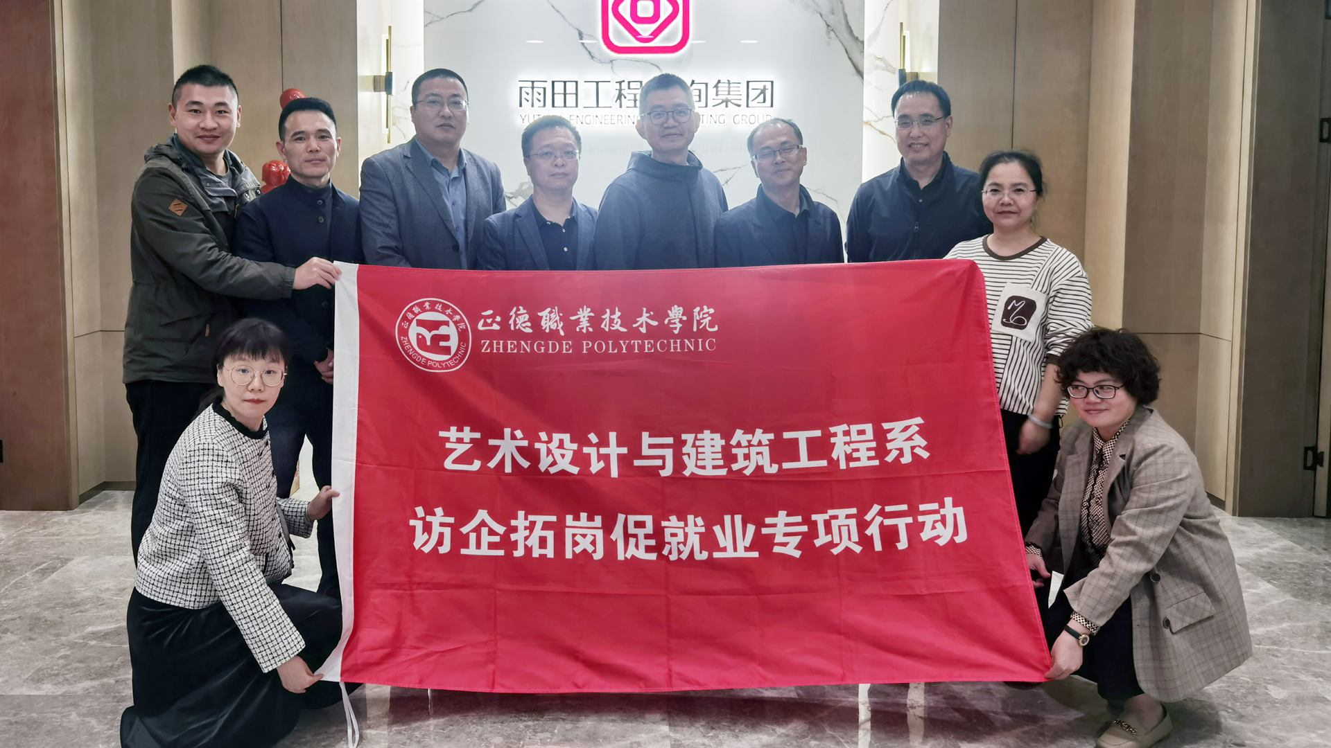 为深化校企合作,精准对接企业用人需求,进一步拓宽毕业生就业渠道,促进高质量就业。11月7日下午,艺术设计与建筑工程系副主任周卫(主持工作)、教务处副处长陆松带领专业教师时永玲、花卉、李卉、王家甲等一行共同前往江苏雨田工程咨询集团有限公司(以下简称“雨田集团”)开展访企拓岗促就业活动。得到雨田集团总经理吴义军、总裁办总裁李如斌及各部门领导的热情接待,并就产教融合、人才培养、校企合作、学生就业等方面进行了深入座谈交流。